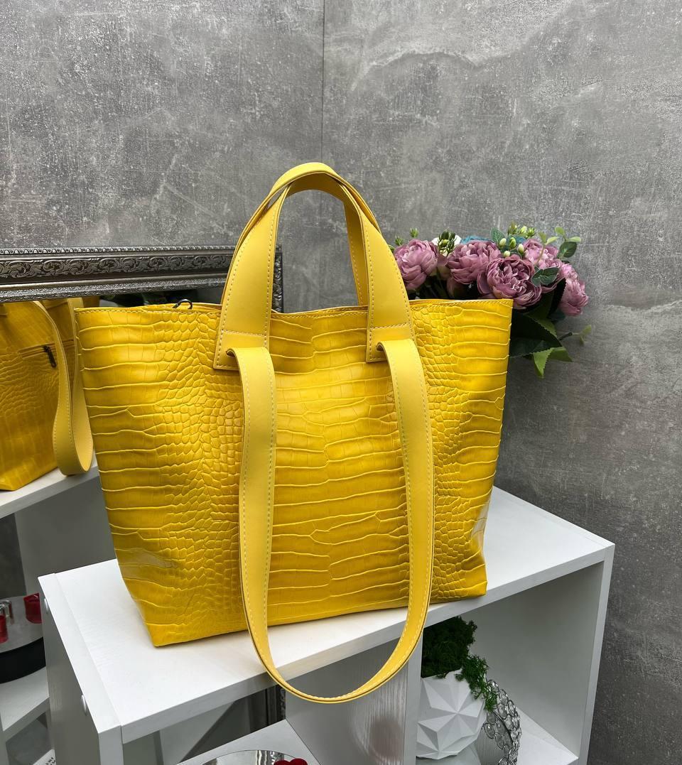 Жіноча сумка велика містка шоппер стильна жовта екошкіра рептилія
