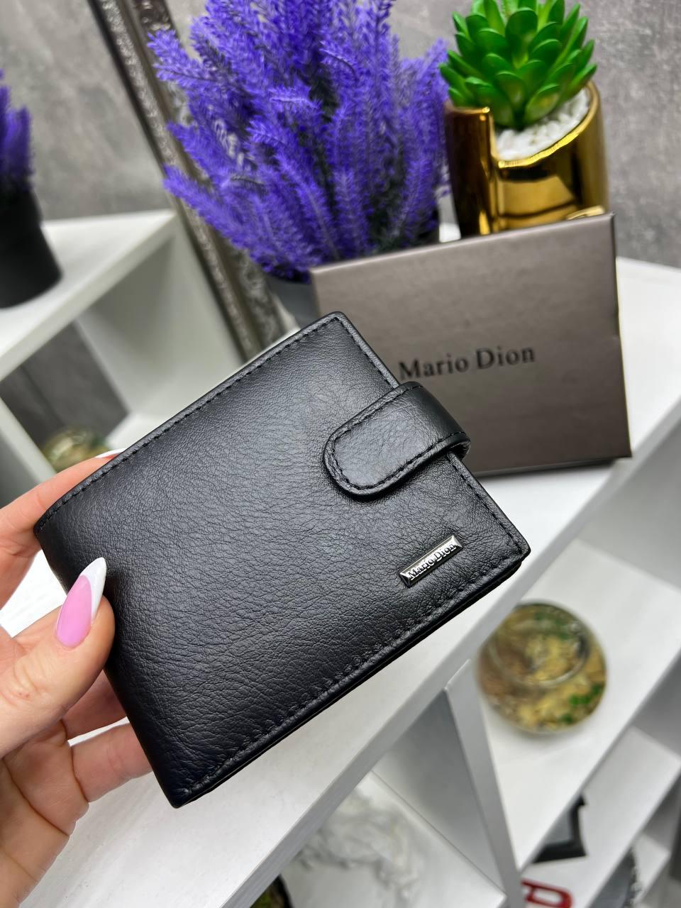 Чоловічий шкіряний гаманець портмоне на кнопці чорний натуральна шкіра